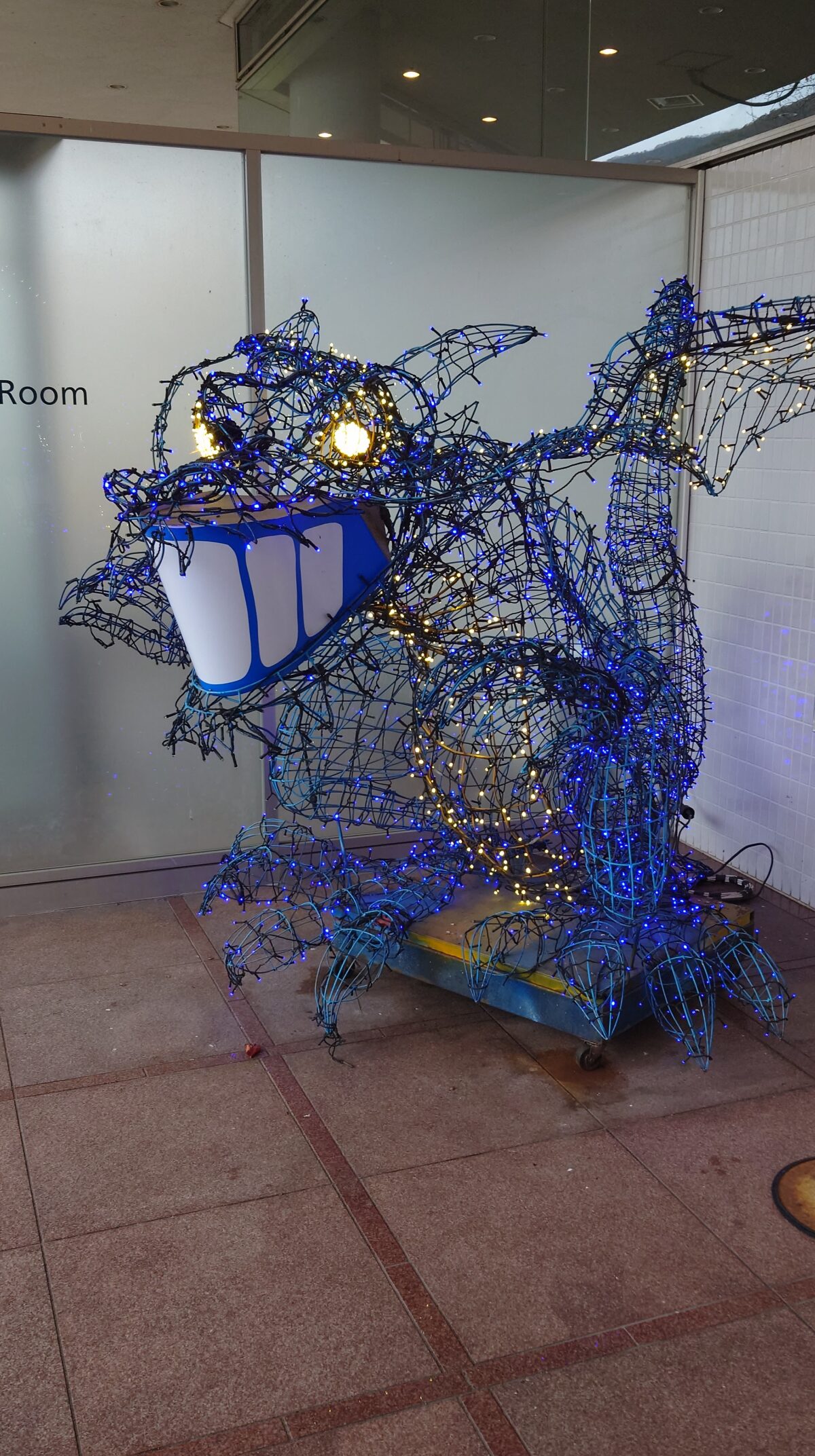 玄関ではドラゴンのオブジェがお出迎え。