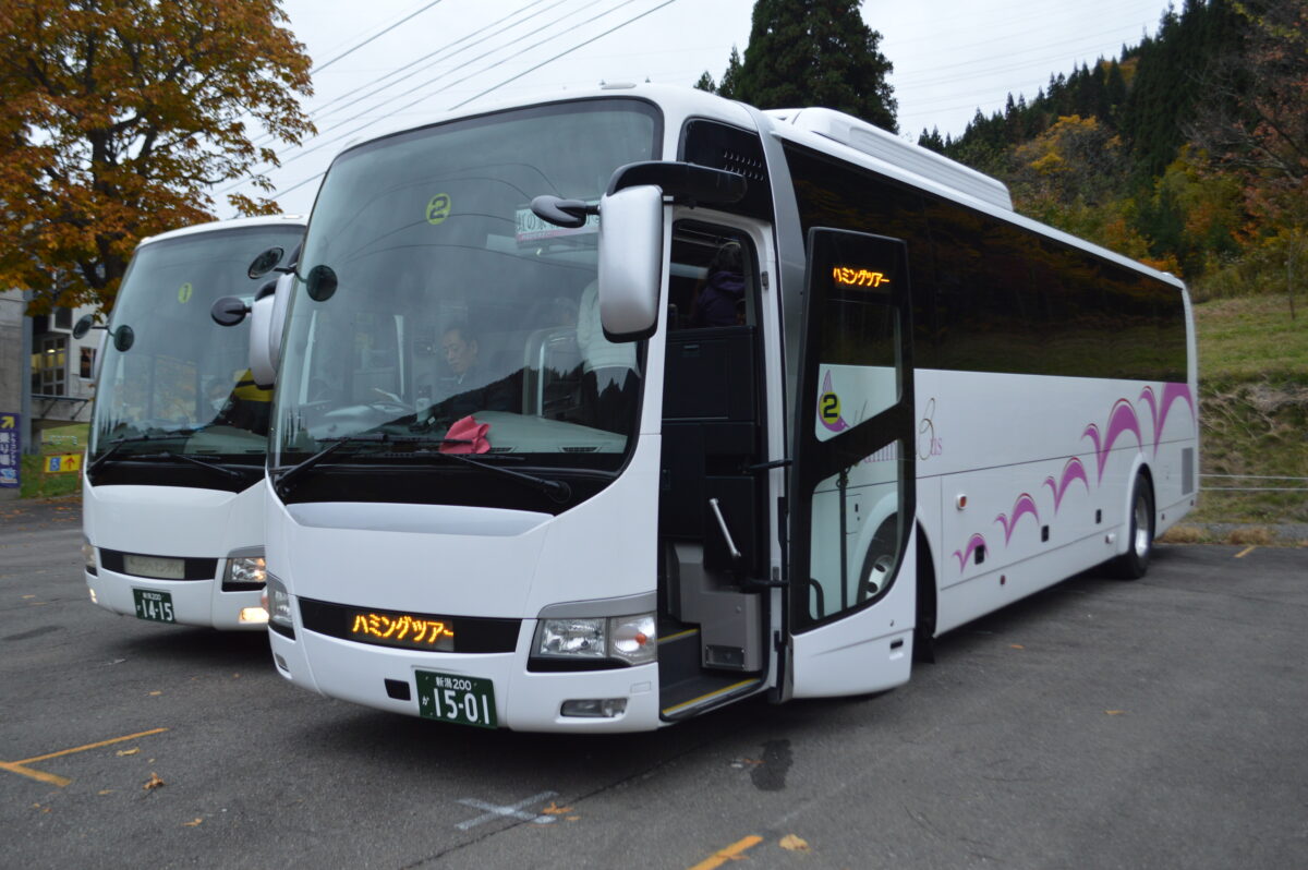 例年通り、バス2台連ねていきます。(今年はハミングバスでした)