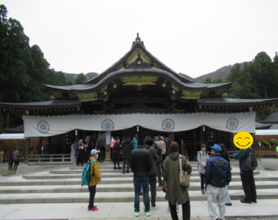 弥彦神社では、大きな鳥居⛩でまずは集合写真!📸その後、参拝。👏