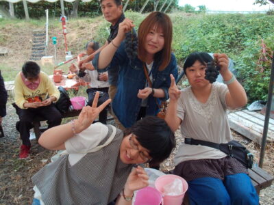 昼食後に、ヤクルト福島工場を見学、まるせい果樹園でブドウ狩りを楽しみました!